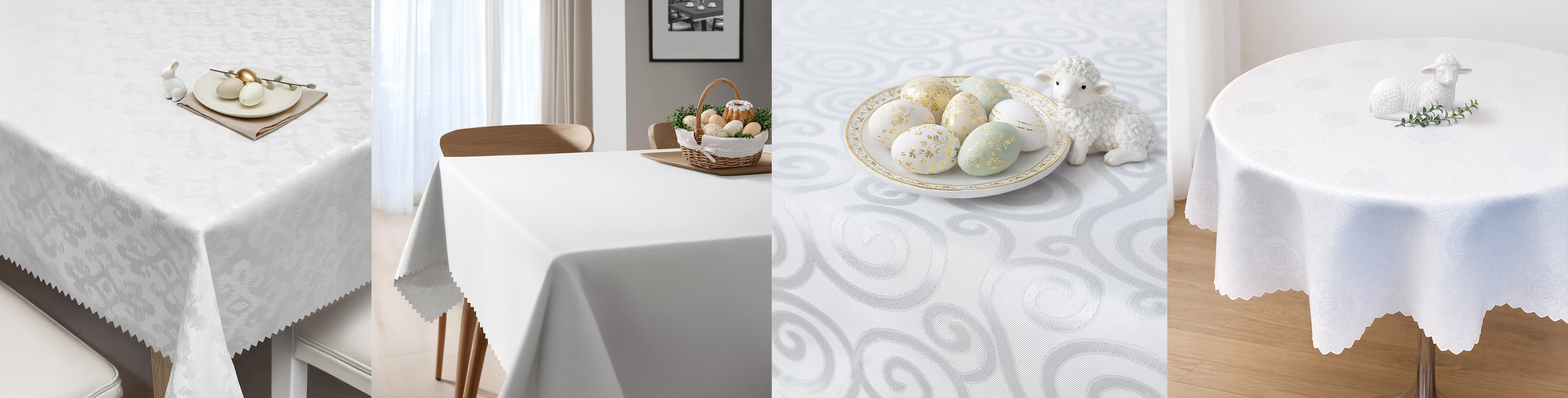 Biały obrus to absolutna podstawa wielkanocnego stołu. Jest ponadczasowy i pasuje do każdej aranżacji – od klasycznej po nowoczesną.
