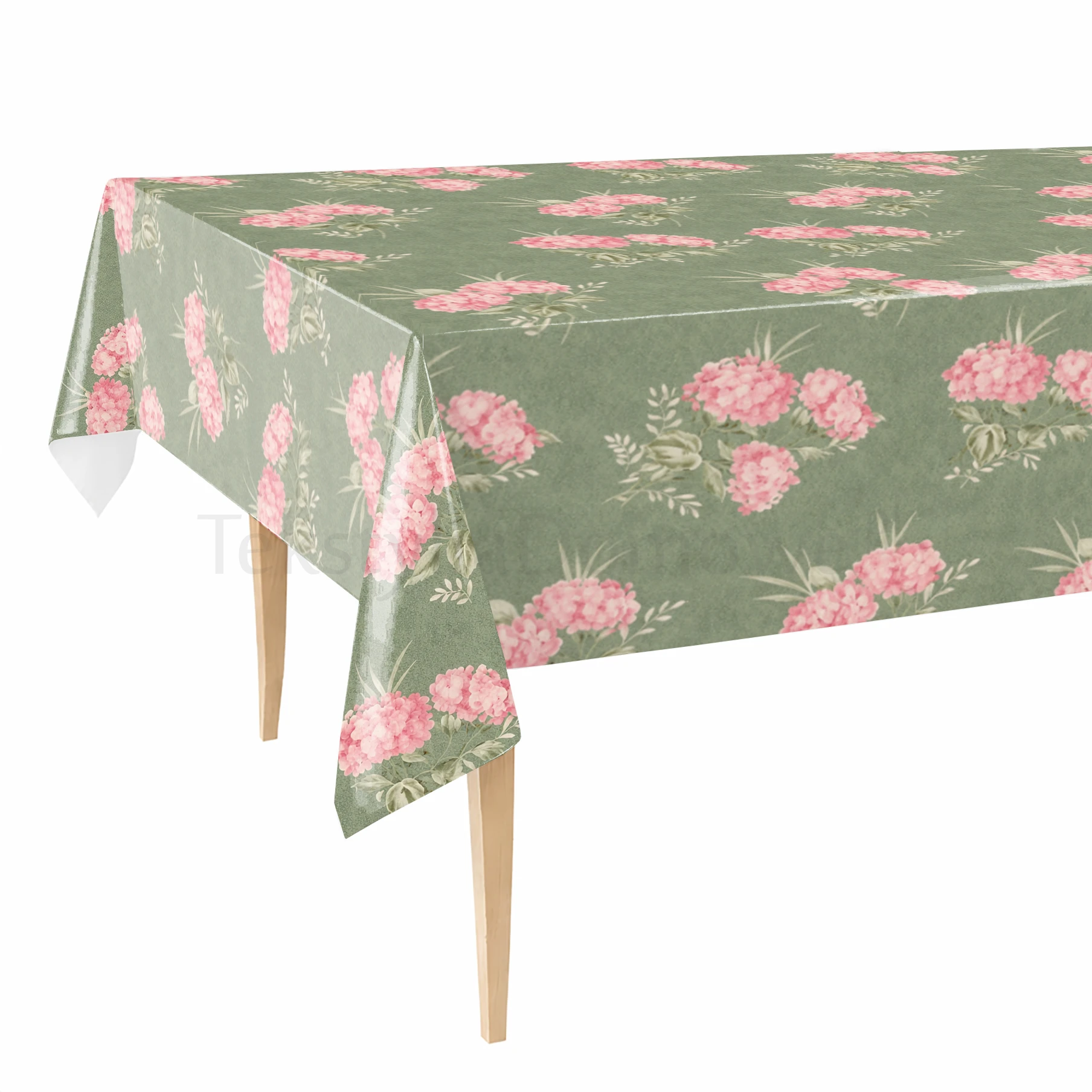 Subtelny wzór różowych kwiatów na zielonym tle doda elegancji każdemu stołowi. Odporność na wilgoć i zarysowania sprawia, że jest idealny do kuchni, jadalni, na taras i do ogrodu.