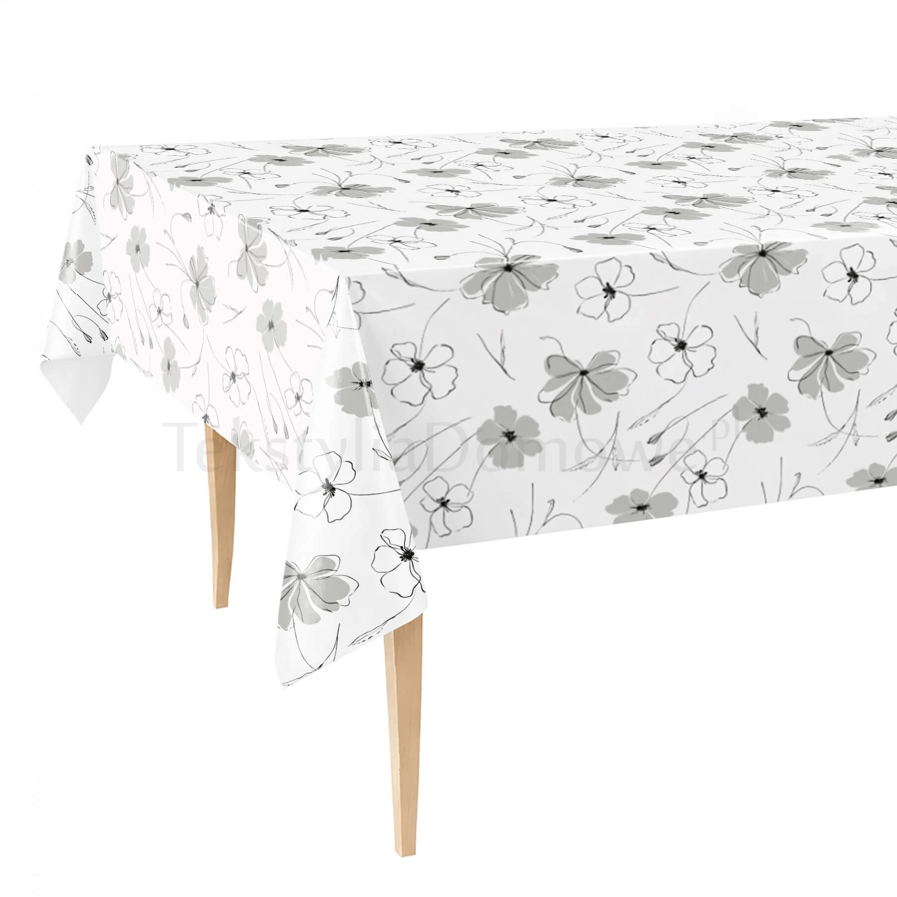 Przyozdobiony lekkimi, szkicowymi konturami kwiatów w odcieniach szarości na tle utrzymanym w subtelnym odcieniu bieli, ten obrus wnosi lekkość i spokój do każdej przestrzeni jadalnej.