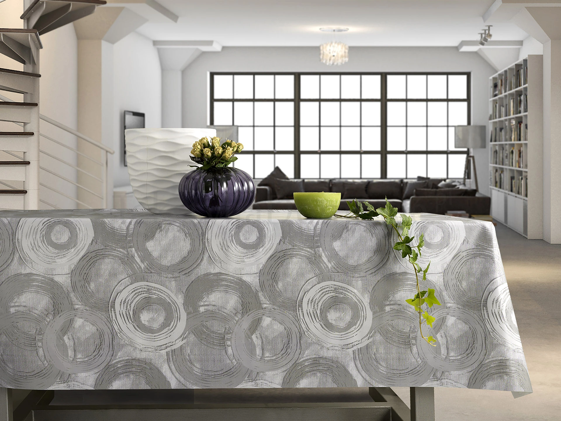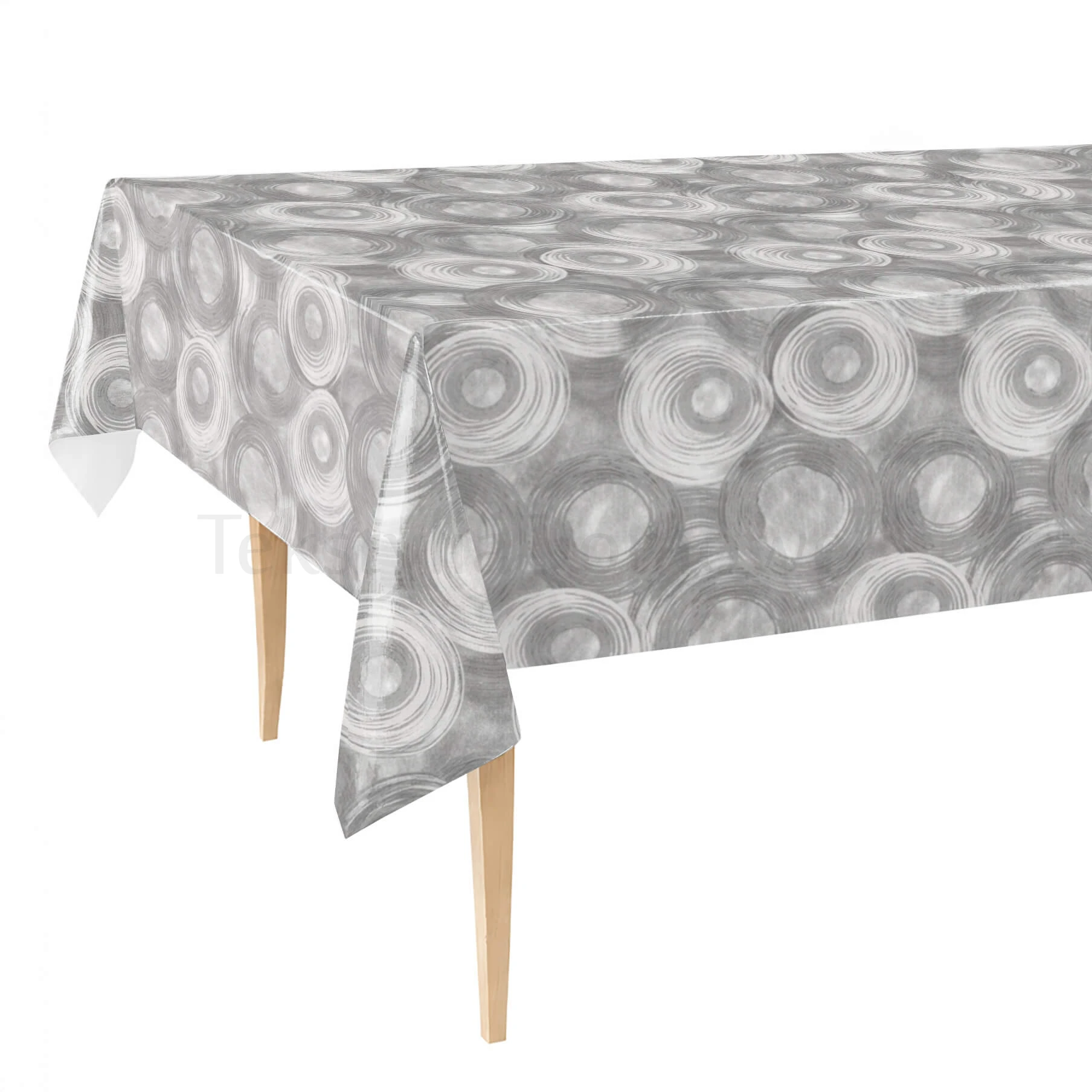 Wzór w nowoczesne kręgi oraz subtelny kolor szarości wprowadzą styl do każdej przestrzeni. Łatwy w czyszczeniu i wodoodporny, idealny do jadalni, kuchni, tarasu i ogrodu.